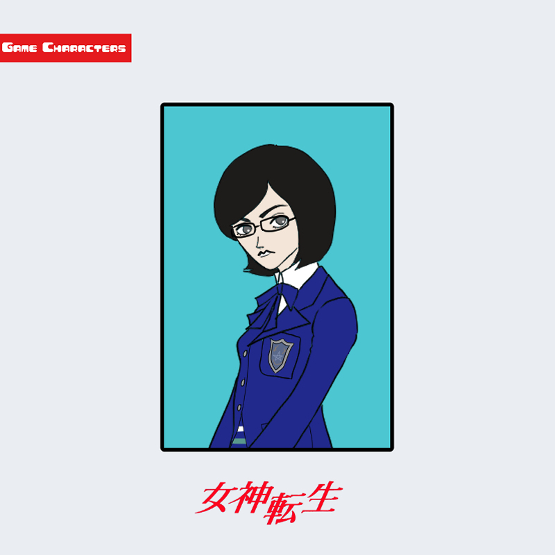 『真・女神転生 if…』に登場するレイコは、黒髪のショートボブに眼鏡を着用した知的印象の女子学生である。青いブレザー型の制服には校章が入り、白いシャツとのコントラストが明確に設計されている。襟元は開放的で、視線の方向と姿勢に落ち着いた均衡がある。全体構成は#制服融合型 に分類され、他キャラ(ユミやアキラ)と比較すると、装飾の少なさと造形の直線性が特徴的である。