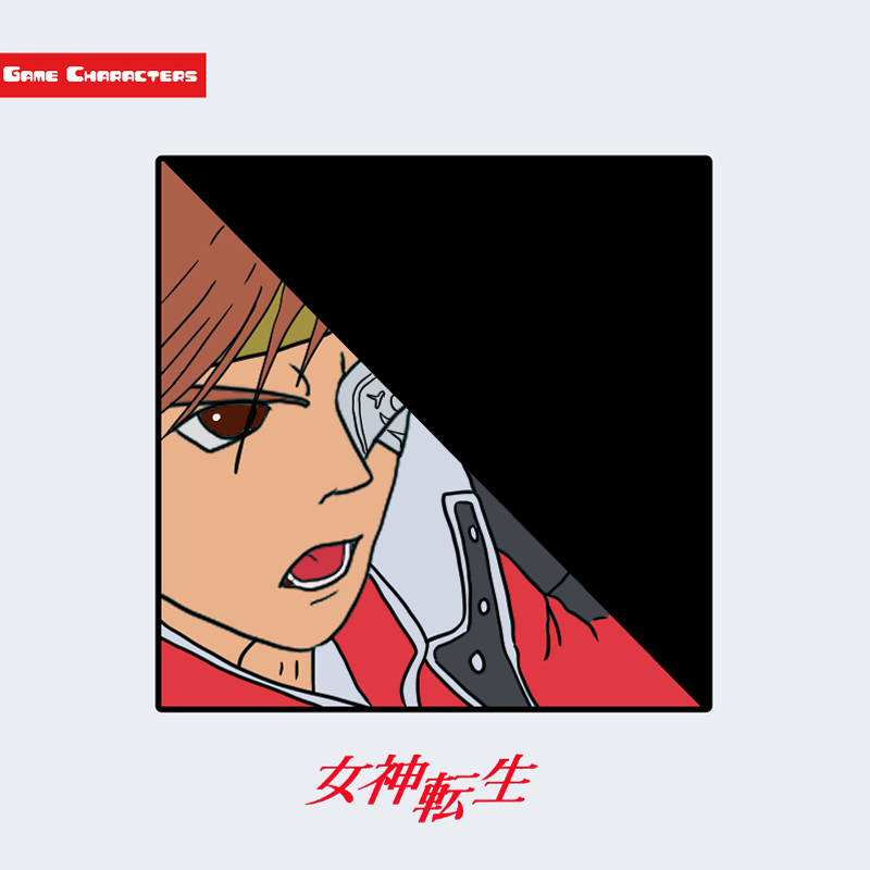 『女神転生 東京黙示録』に登場する葛城史人は、茶系の短髪と左眼に装着された金属製の義眼装置が特徴的なキャラクターである。赤いジャケットの下に黒いインナーを着用し、首元には機械的な接合部のような構造が確認できる。衣装と装具が一体化した構造を持ち、人体と機械の境界を曖昧にする意匠となっている。この造形は「機械融合型」または「義装構造」に分類され、同作品内の他キャラよりも明確にサイバネティック要素が強調されている。
