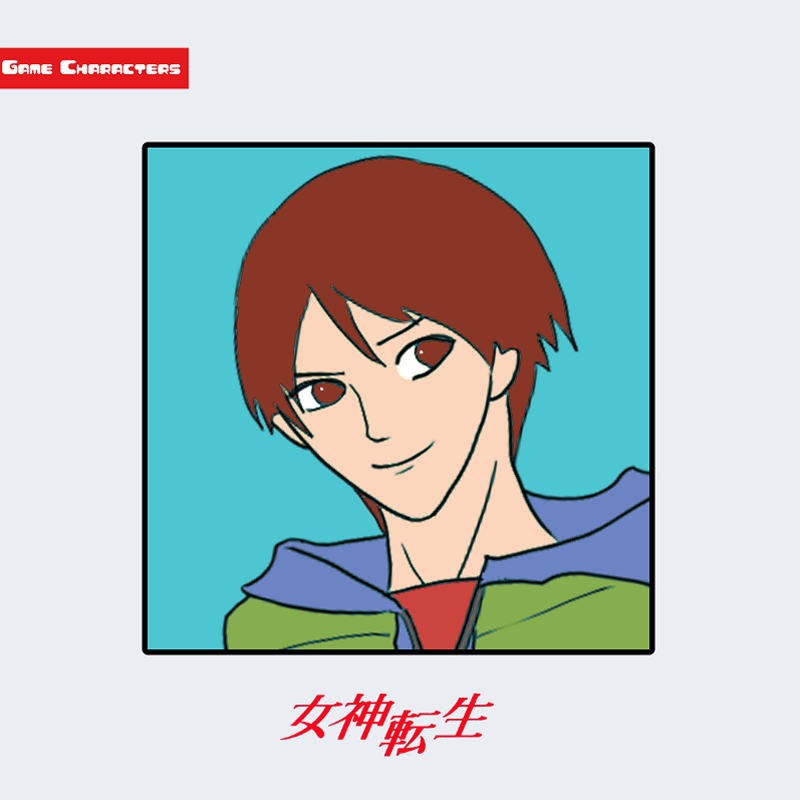 『真・女神転生 NINE』に登場するアズマケイは、赤褐色の短髪と細身の輪郭を持つ人物として描かれている。髪は前方へ流れる自然なカットで整えられ、頬に沿って緩やかなラインを形成している。衣装は緑系のアウターの下に赤いインナーを重ね、襟元には青のフードが見える多層的な構成である。全体の配色は中間色を中心にまとめられ、キャラクターの輪郭を明確に保つ構造デザインとなっている。構造分類としては、#人型カジュアル融合型 に属する。