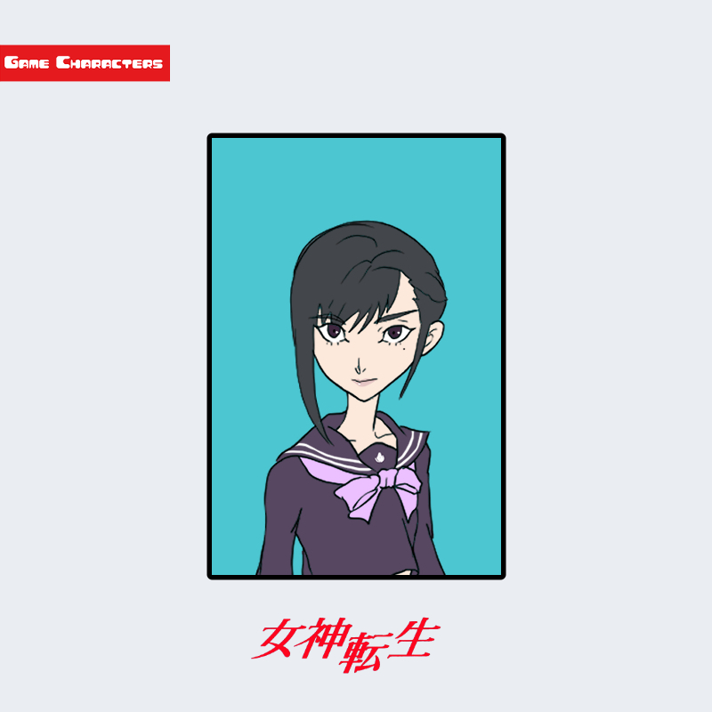 『D×2 真・女神転生 リベレーション』に登場する龍造寺梨花は、長い黒髪を右側でまとめ、前髪を斜めに流した落ち着きのある造形を持つ女性キャラクターである。衣装は濃い紫色のセーラー服で、襟とリボン部分に淡いラベンダー色のラインが入り、上品な統一感を保っている。視認範囲は上半身中心で、制服融合型の構造に分類される。同作内の高殿栞や上田リリンと比較すると、より伝統的な学生服デザインを基調としている点が特徴的である。