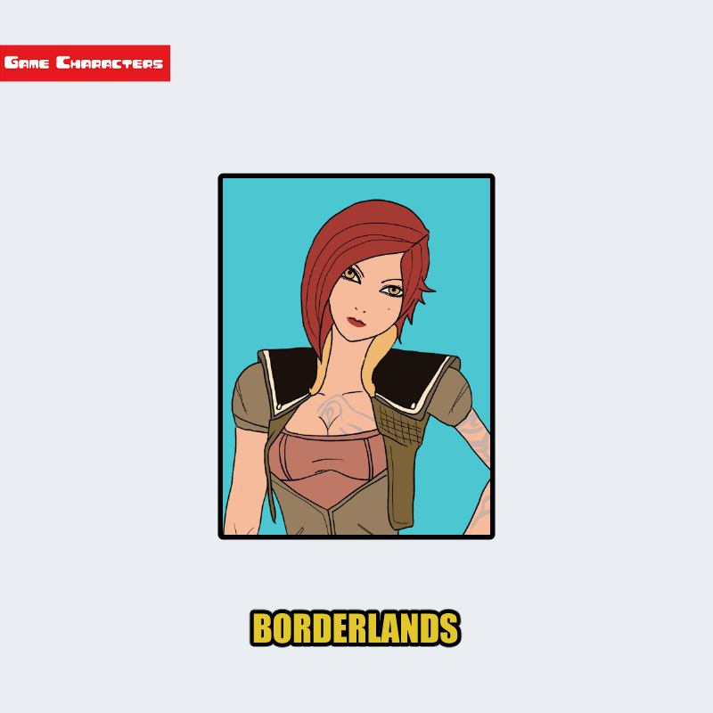 『Borderlands』に登場するリリスは、赤みがかったショートヘアと露出の多い衣装を特徴とする人間型キャラクターである。上半身は軽装のベスト状アーマーとインナーの組み合わせで、肩口には布と金属の混合素材が用いられている。胸部から腕にかけて紋様のような模様が確認でき、デザイン的にも装飾要素と機能性が融合している。全体として、ローランドやブリックの重装構造に対し、軽装・機能装飾型の対照的構成を示す。構造分類としては「機能装飾型」に該当する。