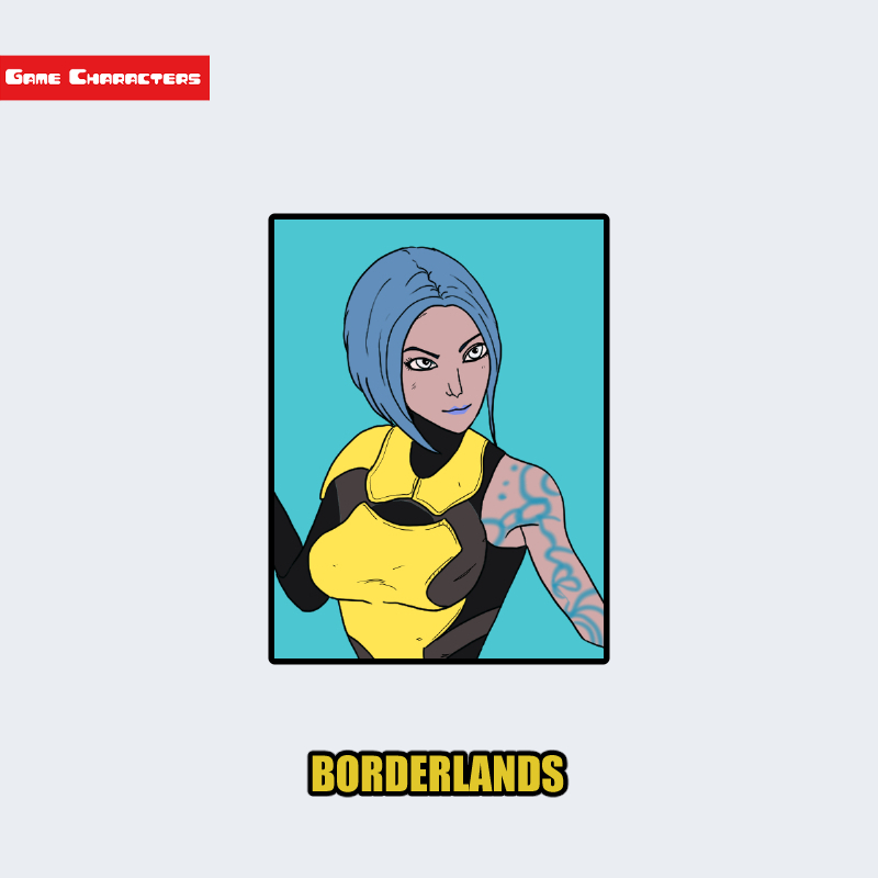 『Borderlands 2』に登場するマヤは、青いショートヘアと全身を包むスーツ状の衣装を特徴とする人間型キャラクターである。上半身は黄色と黒を基調としたデザインで、右腕から肩にかけて青い発光模様が描かれている。衣装構造は戦闘用ながらも滑らかな素材感を持ち、技術的・精神的モチーフの両立を示す意匠となっている。露出を抑えた流線的デザインが特徴的で、リリスの装飾型構造に対して、マヤは「身体融合型」に分類される。