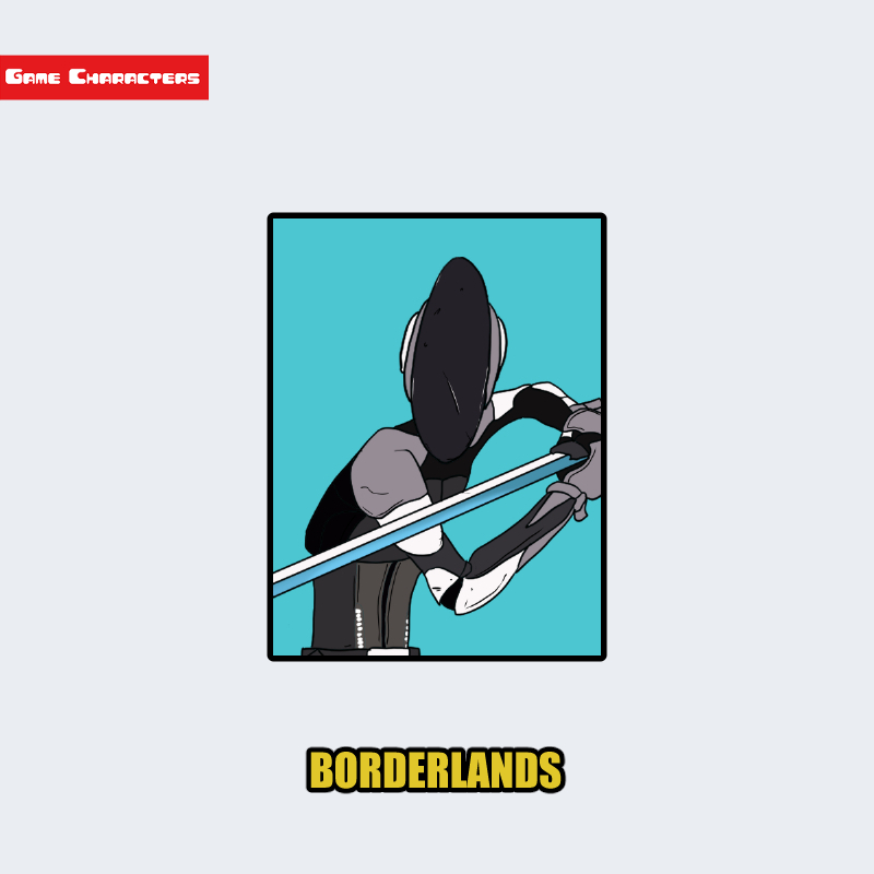 『Borderlands 2』に登場するゼロは、全身を黒と灰色で覆うスーツ構造を持つ人型キャラクターである。顔部は完全にマスクで覆われ、視覚的な表情要素を排した無機的デザインが特徴。細身の体格と長い腕部を持ち、右手には刀状の武器を保持している。スーツの素材は金属と合成繊維の複合的質感を示し、他キャラの生身構造に対して人工的・抽象的な身体設計を持つ。構造分類としては「機体擬人化型」に該当する。
