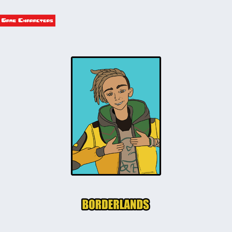 『テイルズ・フロム・ザ・ボーダーランズシリーズ』に登場するオクタビオは、サイドを刈り上げたドレッド風ヘアスタイルが特徴的な人間キャラクターである。上半身は黄色と緑のツートンジャケットを着用し、インナーにはグレー系のシャツを重ねている。衣装の素材は布と合成繊維の軽装構造で、都市的ストリートファッションの要素が強い。全体として自由度の高い現代的デザインであり、同作の技術職系キャラクターと対比すると「都市融合型」に分類される。