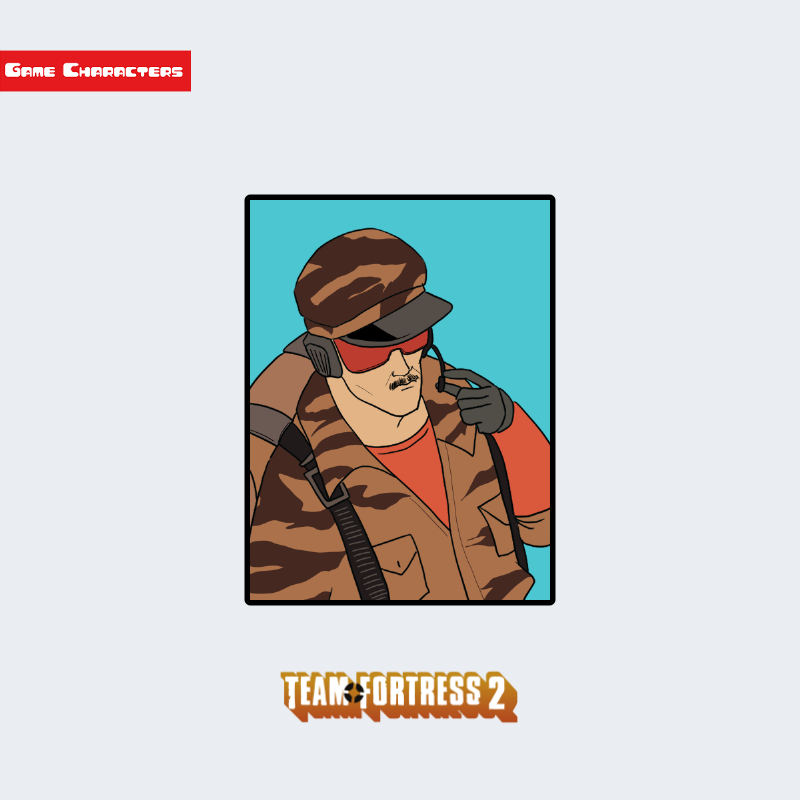 『Team Fortress Classic』に登場するスカウトは、迷彩柄のジャケットとキャップを組み合わせた軽装の兵科デザインである。上半身には無線機を思わせる装備ベルトが確認でき、偵察兵としての役割を示す。サングラスとヘッドセットが視覚的特徴であり、通信・索敵を担う人物像を造形的に強調している。全体は「軽戦闘型構造」に分類され、同作品内のエンジニアやソルジャーと比べ、機動性を意識した装備構成となっている。