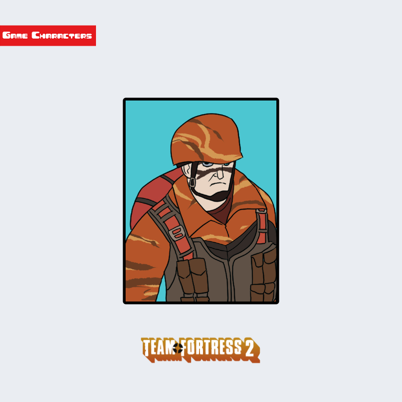 『Team Fortress Classic』に登場するソルジャーは、厚手の戦闘服と防弾ベストを組み合わせた重装兵科デザインである。頭部には金属製のヘルメットを装着し、全体をオレンジとブラウンの迷彩調でまとめている。胸部には弾帯や装備ストラップが配置され、正面装備を重視した「前線突撃型構造」に分類される。体格はがっしりとしており、他の兵科よりも装甲面積が広い造形となっている。