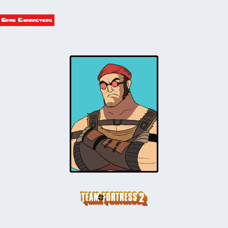 『Team Fortress Classic』に登場するヘビーは、筋肉質な体格と防弾チョッキを備えた重装兵科キャラクターである。頭部には赤いバンダナを巻き、顔にはゴーグル型の保護メガネを装着している。上半身は露出部分が多く、腕部には厚手のガントレットや装備バンドが配置されており、重量兵器の操作を前提とした「重装突撃型構造」に分類される。装備構成はソルジャーよりも耐久性を重視し、シルエット全体が力強く設計されている。