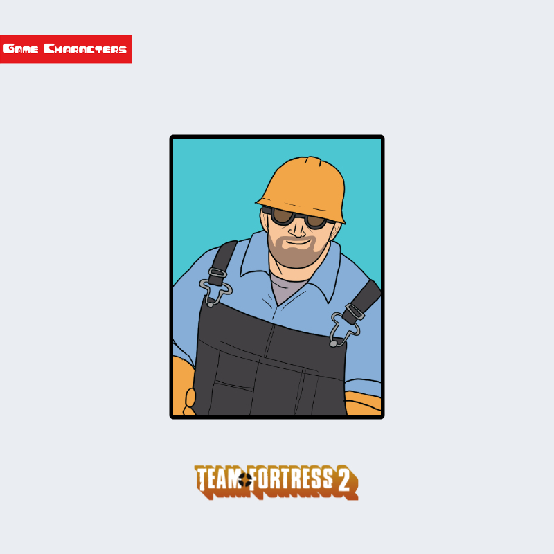 『Team Fortress 2』に登場するエンジニアは、作業用ヘルメットと溶接用ゴーグルを装着した作業服姿のキャラクターである。淡いブルーのシャツに黒い防護エプロンを重ね、腰部には工具ベルトを備えている。全体構造は「機能主義的作業型構造」に分類され、体格は安定感のある中量型に設計されている。同シリーズ前作に比べ、丸みを帯びた造形と明快な色調が強調され、視覚的に親しみやすいシルエットへと再構成されている。