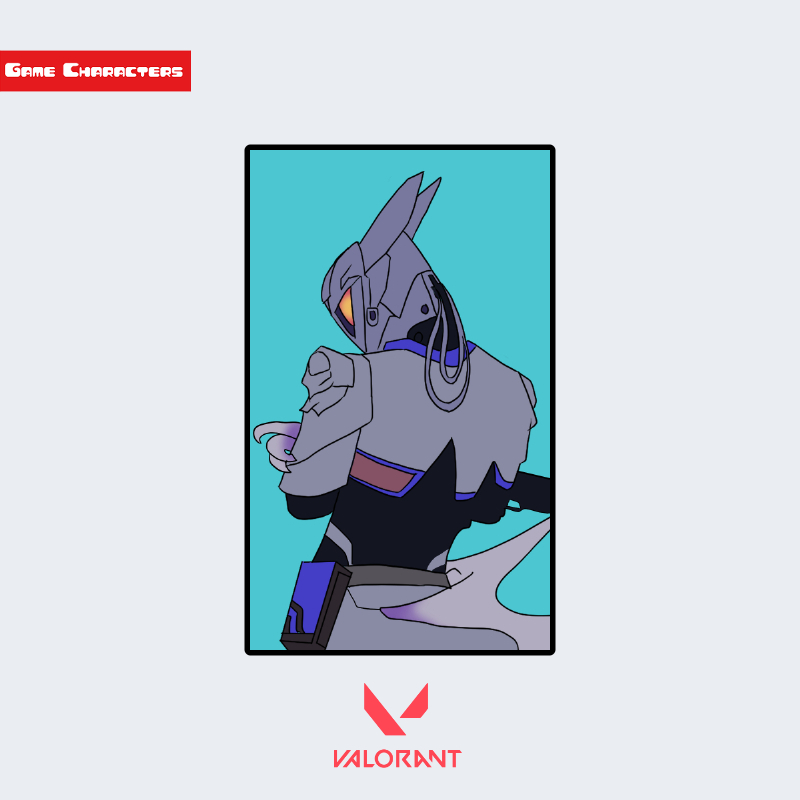 『VALORANT』に登場するヴァイスは、金属装甲を主体とした人型メカニカルデザインを持つキャラクターである。頭部は滑らかな装甲面で構成され、角状のアンテナパーツが側頭部から突き出している。上半身には硬質素材と布素材を組み合わせた層構造が見られ、肩部には動作補助を想定した関節装甲が配置されている。全体的なフォルムは細身ながらも機能性を重視した構築で、構造分類としては「軽装人型機械構造」に該当する。