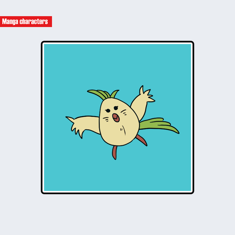 植物風パーツ+黄色い丸型体型という構造は他作品にも類例があるが、葉状パーツの配置と胴体中央の丸い造形、短い四肢の組み合わせは本キャラ特有で、混同リスクは低い。