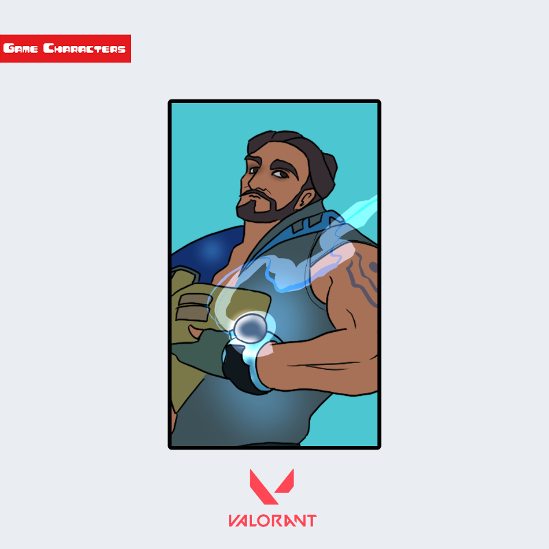 『VALORANT』に登場するハーバーは、水を象徴する戦術装備構造を持つキャラクターである。髪は黒く後方へまとめられ、濃いヒゲをたくわえた精悍な顔立ちをしている。上半身は袖なしの戦闘ベストで構成され、右腕には青く発光する装置が装着されている。装備全体は防水性を想定した素材構成で、流体制御を示す視覚的要素が複数見られる。構造分類としては「水流制御型戦術装備構造」に分類される。