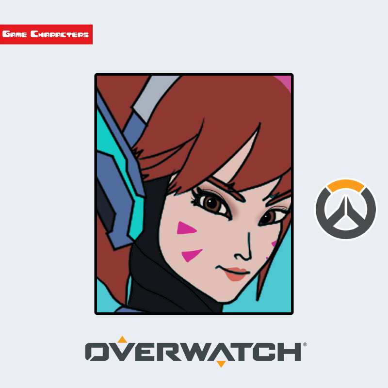『オーバーウォッチ』に登場するD.Vaは、頬にピンクのラインが描かれた若い女性キャラクターである。明るい茶髪を後方でまとめ、髪には青と黒のアクセントを持つ大型のヘッドギアが装着されている。顔立ちはシャープで、視線には集中力と機械操縦者的な精密さを感じさせる。衣装は密着型のスーツ構造で、テクノロジーとの一体性を示すデザインが施されている。全体として「機装融合型構造」に分類される。