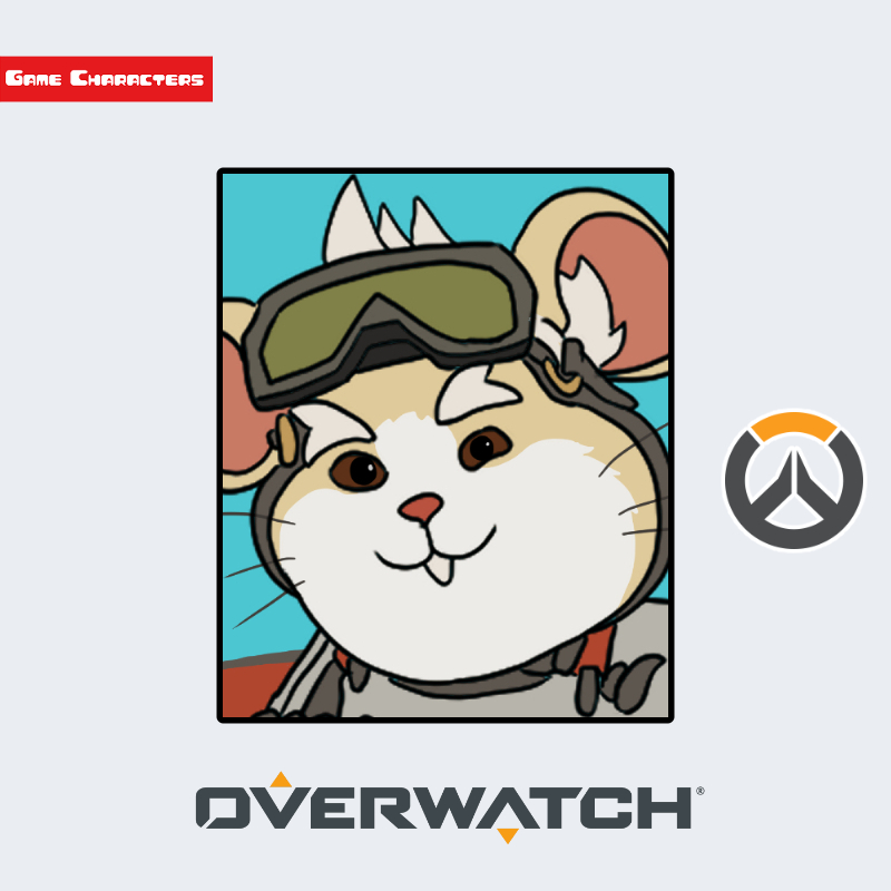 『オーバーウォッチ』に登場するレッキング・ボールは、ゴーグルを頭に装着したハムスター型のキャラクターである。丸みを帯びた顔の造形と小型の耳が特徴で、毛並みは淡いベージュと白を基調としている。ゴーグルのレンズ部分は黒色で、機械的なアクセントを加えている。体格は小型動物としてのバランスを保ちつつも、外装パーツや装備によって戦闘的意匠を持つ。「擬獣機装融合型構造」に分類される。