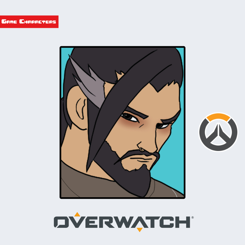 『オーバーウォッチ』に登場するハンゾーは、黒髪を高く結い上げた髪型と整えられた髭を特徴とする男性キャラクターである。額の生え際から後頭部にかけて流れる長髪が確認でき、頭頂部は髪を束ねて固定している。衣装は和装を基盤とした戦闘用装備であり、肩や腕には防具的構造が施されている。全体的な造形は「伝統武装融合型構造」に分類され、技術的装備と古典的意匠の共存が見られる。