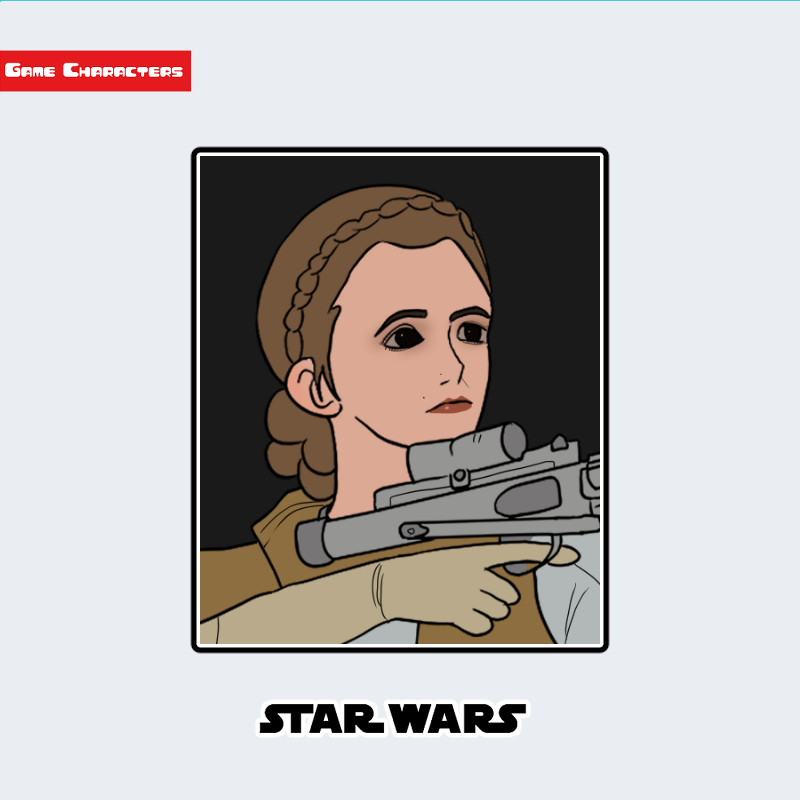 『スター・ウォーズ』に登場するレイア・オーガナは、髪を頭部後方でまとめた特徴的な三つ編み状のスタイルを持つ人型キャラクターである。上半身には淡いブラウン系の衣装を着用し、首元にやや高めの襟を持つ。両腕には手袋を装着しており、視認範囲では銀色のブラスターを構える姿勢が確認できる。衣装全体は機能性と儀礼性を兼ね備えており、「指揮服融合型構造」に分類される。同シリーズ内では軍装型衣装群と比べて柔軟素材の使用が目立つ。