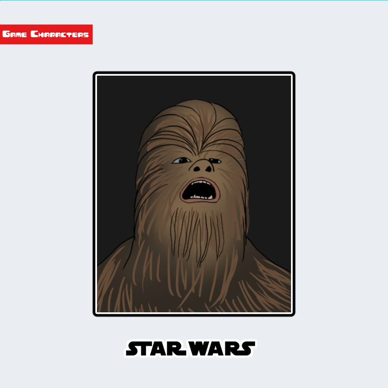 『スター・ウォーズ』に登場するチューバッカは、全身を濃い茶色の体毛で覆った大型の人型キャラクターである。顔は鼻筋から口元にかけて突き出しており、獣類を思わせる構造を持つ。頭頂部から顎にかけての毛流れが滑らかに連続し、体全体の輪郭を強調している。衣装は確認できないが、肩部には弾帯のような装備を掛けていることが多い。構造的には「獣人型構造」に分類され、同シリーズの人間型キャラと比べると毛皮の立体構成が支配的な造形となっている。