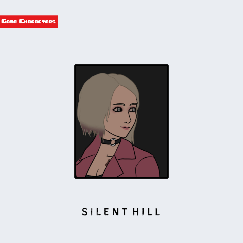 『サイレントヒル』に登場するマリアは、淡いブロンドのショートヘアと、深いピンク色のジャケットを特徴とする女性キャラクターである。衣装は胸元の開いたインナーとネックチョーカーを組み合わせた装飾融合型構造で、全体的に都市的かつ演出的な造形が見られる。体格は細身で、首回りや鎖骨の露出が強調されるデザイン。シリーズ内では、同じく現実的造形を持つアンジェラなどと異なり、視覚的演出要素を強く含む構造表現となっている。