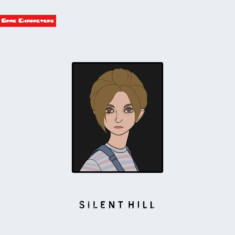 『サイレントヒル』に登場するローラは、明るい茶髪を後ろでまとめた子供らしい髪型と、ストライプのシャツにデニムのサロペットを重ねた衣装を特徴とする少女キャラクターである。衣装は子供用日常衣類型構造で、機能性と軽快さを兼ね備えた構成となっている。体格は小柄で、衣服全体のシルエットが丸みを帯びており、他の成人キャラクター(例:アンジェラ、マリア)と明確なサイズ比対比をなす。装飾要素は最小限で、色彩構成によって年齢層の視覚的識別が強調されている。