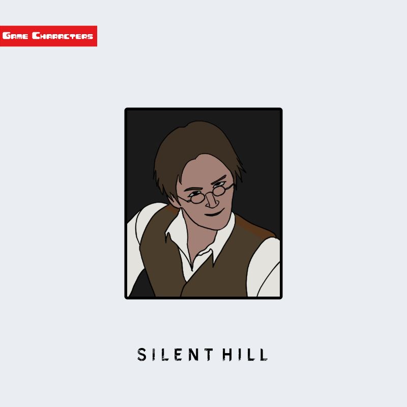 『サイレントヒル』に登場するヴィンセント・スミスは、丸みを帯びた眼鏡と整えられた短髪、そしてベストとシャツを重ねた衣装構成を持つ男性キャラクターである。衣装は知的職業層を示唆するフォーマル融合型構造で、上半身中心のレイヤー構成が特徴。体格は中肉で、姿勢は前傾気味に描かれており、穏やかな印象を与える造形をしている。同シリーズ内では、一般衣類型のキャラクター(例:ジェイムスやハリー)とは異なり、構造的に「文職系」デザインに分類される。