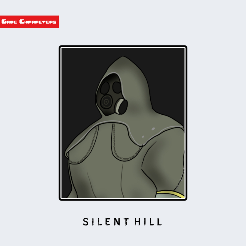 『サイレントヒル』に登場するブギーマンは、全身を灰緑色の防護服で覆い、頭部には黒い防毒マスクを装着した大型の人型クリーチャーである。衣装は防護装備融合型構造で、フードとスーツが一体化した厚手の素材により重厚な印象を与える。肩から腕にかけては極端に発達しており、上半身が強調された逆三角形の体型をしている。可視範囲では露出部がなく、視覚的には完全な匿名性を保つデザイン構成である。シリーズ内ではピラミッドヘッドと同系統の「象徴的人型構造」に分類される。