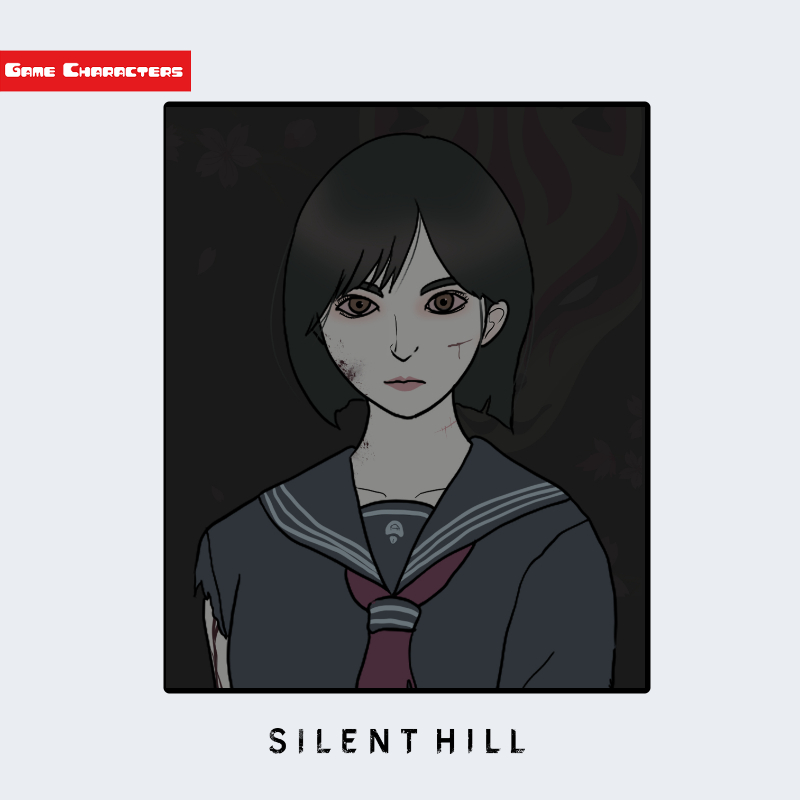 『サイレントヒル』に登場する深水雛子は、黒髪のボブカットと、紺色のセーラー服を着用した少女キャラクターである。髪は前髪が眉の上で整えられており、全体的に左右対称の輪郭を持つ。衣装は標準的な日本の学生服型構造で、襟元のスカーフとライン入りの襟デザインが特徴。体格は華奢で、肩から袖にかけて緩やかなシルエットを描く。構造分類としては制服融合型に属し、シリーズ内の他キャラ(例:リサ・ガーランド、クローディア・ウルフ)と比較すると、現実的衣装構造が際立つ。
