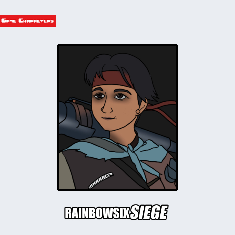 『レインボーシックスシージ』に登場するアマルは、機動的な侵入を得意とするオペレーターとして描かれている。画像では短く整えられた黒髪に赤いヘッドバンドを着用し、軽装の戦闘服と青いスカーフを首元に巻いている。背部には大型の装備を背負い、行動性を重視した構造が見られる。全体として、動作性と防御性を両立した「軽装戦術機動型」のデザインに分類される。