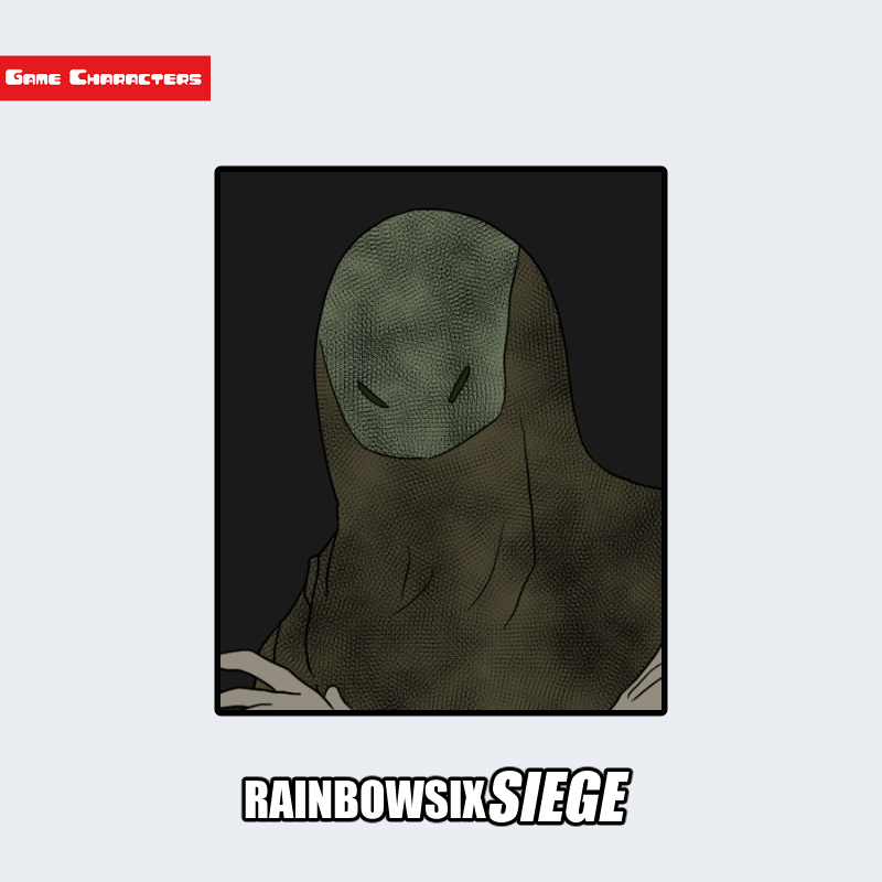 『レインボーシックスシージ』に登場するノックは、ステルス行動を象徴する防衛オペレーターである。画像では、全身を覆う黒い装備の上に濃緑のフード付きスーツを着用し、顔は完全にマスクで隠されている。マスク表面には微妙な反射があり、視覚的情報を遮断する構造になっている。全体として軽装ながらも心理的威圧感を与える「隠密戦術融合型」に分類される。外観は他キャラと比較して最も匿名性が高い構造を持つ。