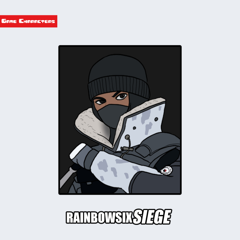 『レインボーシックスシージ』に登場するフロストは、寒冷地仕様の防寒装備を着用した防衛型オペレーターである。画像では、黒いニット帽とフェイスマスクを装着し、白と灰色を基調としたカモフラージュジャケットを身にまとっている。装備の内側には防寒用のファーライナーが確認でき、肩部と腕部に強化パッドを備える。全体として「寒冷防衛型」に分類され、機能性と保温性を両立させた装備設計が特徴的である。
