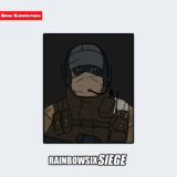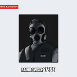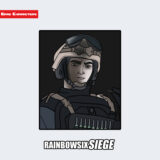 『レインボーシックスシージ』に登場するミラは、防御用装備を備えた戦術的オペレーターである。画像では、黒髪を短くまとめた状態で、重厚な防弾ヘルメットと防護ベストを着用している。頬には迷彩ペイントが施され、上半身の装備は実用性を重視した構造となっている。胸部には反射素材を用いたマークが配置され、視認性を確保しつつ階級や所属を象徴している。全体として「防御戦術型」に分類され、堅牢さと機能性を両立したデザインが特徴である。