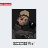 『レインボーシックスシージ』に登場するミュートは、防御を重視した装備を持つオペレーターである。画像では、全面を覆う黒い防弾スーツを着用し、ガスマスクと遮音用のヘッドギアを装備している。マスク部分には「X」型の白いマーキングが施され、無音や沈黙を象徴するデザインとして機能している。胸部には通信妨害装置を示唆する装備パーツが見られ、電子戦を意識した構造設計がなされている。「通信遮断型」に分類され、視覚的にも静寂と制圧をテーマにした構造が際立つ。