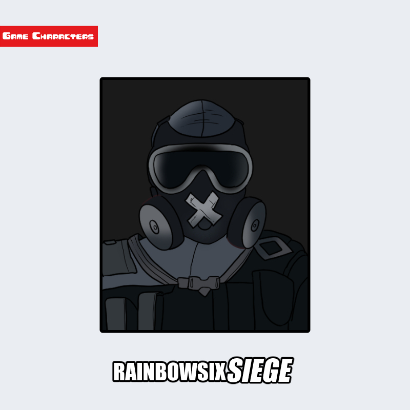 『レインボーシックスシージ』に登場するミュートは、防御を重視した装備を持つオペレーターである。画像では、全面を覆う黒い防弾スーツを着用し、ガスマスクと遮音用のヘッドギアを装備している。マスク部分には「X」型の白いマーキングが施され、無音や沈黙を象徴するデザインとして機能している。胸部には通信妨害装置を示唆する装備パーツが見られ、電子戦を意識した構造設計がなされている。「通信遮断型」に分類され、視覚的にも静寂と制圧をテーマにした構造が際立つ。