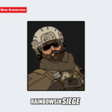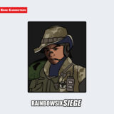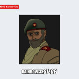 『レインボーシックスシージ』に登場するマエストロは、戦場での監視と制圧を目的とした装備を持つ防衛型オペレーターである。画像では、赤いベレー帽をかぶり、厚手の迷彩服と防弾ベストを着用している。顔には濃い髭を蓄え、表情は自信と冷静さを感じさせる構造をしている。胸部と肩部の装備は重量感があり、光学機器を操作する際の安定性を重視した設計と見られる。「重装観測型」に分類され、実戦的な装甲と指揮官的存在感を併せ持つデザインとなっている。