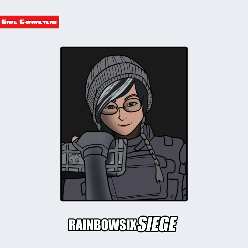 『レインボーシックスシージ』に登場するドッケビは、グレーを基調とした戦術スーツにニット帽を合わせた「電子工作型」のオペレーターである。画像では、黒髪に白いメッシュが入ったショートヘアと、丸型のメガネが特徴的である。手に持つ電子端末は情報戦を象徴する要素であり、装備全体は軽量かつ機能性を重視した構成となっている。全体的に現代的なテクノロジー装備と個性あるアクセサリーを融合させた構造で、他キャラに比べて知的要素を強く反映したデザインと言える。