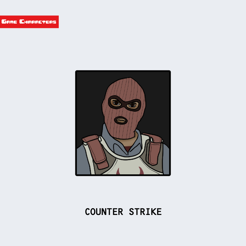 『Counter-Strike 2』に登場する兵士は、茶色の目出し帽と白い防弾ベストを着用した戦闘キャラクターである。衣装は全体的に簡素かつ実用的で、上半身は軽装防護を目的とした構造となっている。目出し帽は頭部全体を覆い、眼と口の部分のみが露出しており、識別性よりも防護と隠密性を重視した設計といえる。色調は暗めの赤茶系でまとめられており、「軽装武装型」に分類される。同シリーズにおけるテロリスト側標準ユニットの一種として視覚的差別化がなされている。