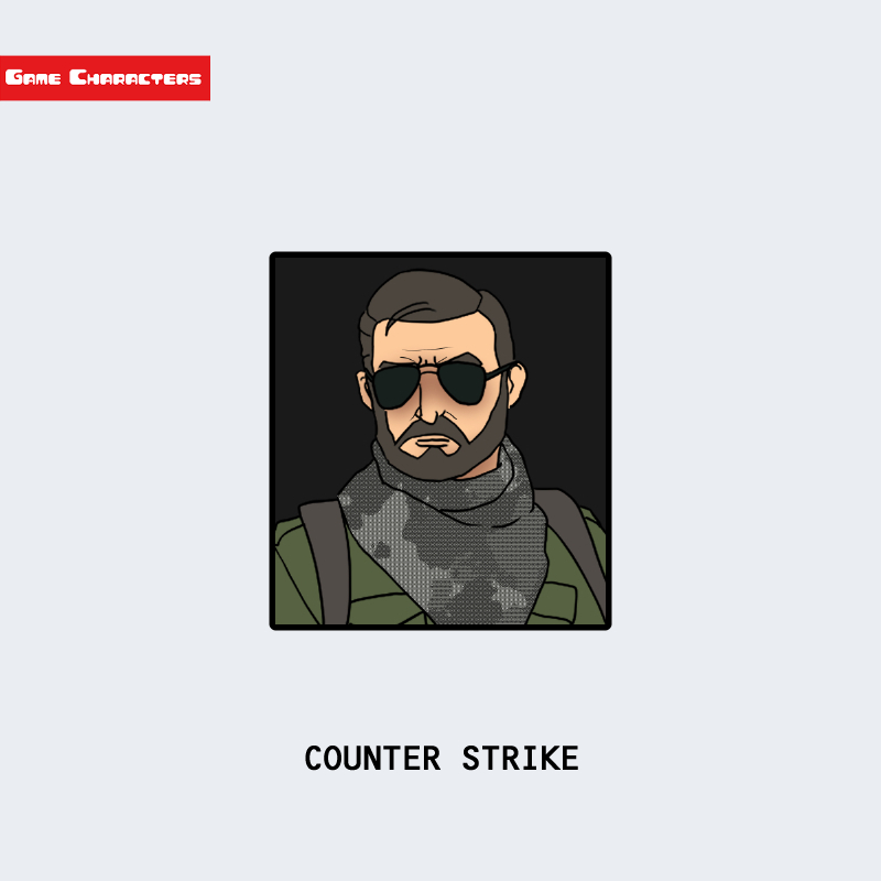『Counter-Strike 2』に登場するジャングル抵抗軍は、戦場用装備を身に着けた男性キャラクターである。短髪と髭を持ち、黒いサングラスを装着している。首元にはグレーの迷彩スカーフ(シュマグ)を巻き、上半身は緑系の戦闘服で統一されている。装備構造は防御よりも機動性を重視した「軽装戦闘型」となっており、同シリーズ内の都市戦闘型キャラクターに比べて自然環境での行動を想定したデザインである。