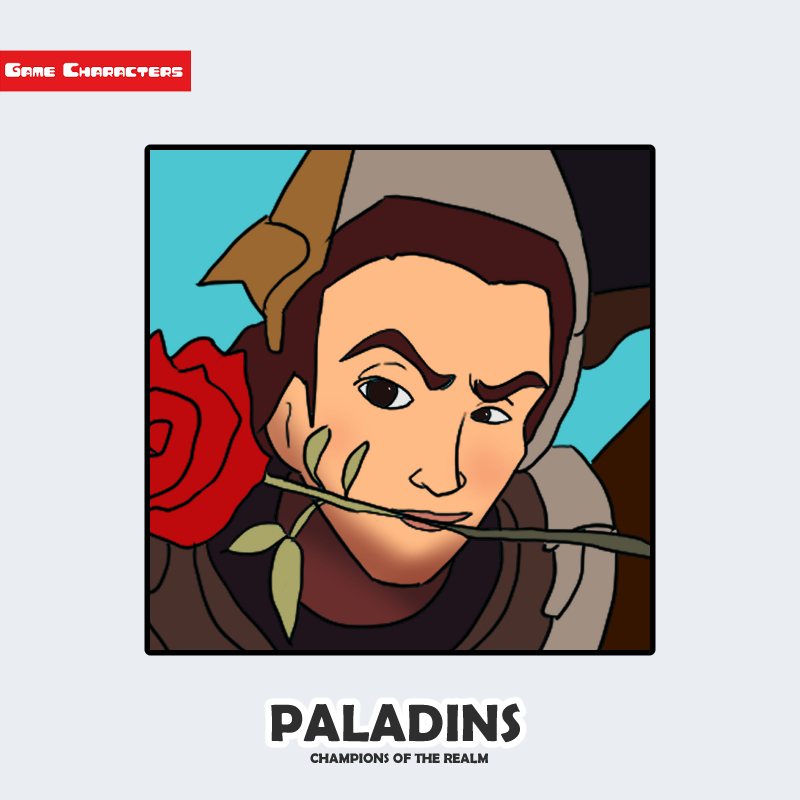 『Paladins』に登場するFernandoは、甲冑をまとった人型キャラクターである。金属質の肩当てと胸部装甲が特徴的で、鎧全体が滑らかな曲線構造を持つ。頭部にはヘルメットを装着しておらず、短髪の黒髪が露出している。口に赤いバラをくわえるという象徴的な演出要素が見られ、装甲戦士の中でも特異な装飾構造を持つ。構造的には「重装騎士型」および「儀礼装飾構造」に分類され、同作の他の防御系キャラクターよりも装飾性が強いデザインに属する。