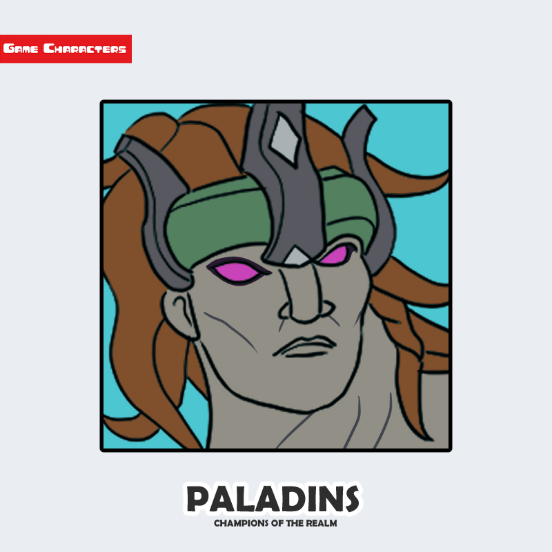 『Paladins』に登場するTerminusは、灰青色の肌と発光する紫色の眼を持つ人型キャラクターである。頭部には金属製の王冠状装飾があり、長い茶褐色の髪が背後へ流れている。顔立ちは重厚で、彫刻のような質感を持つ構造が確認できる。全体的に石像や亡霊を思わせるデザイン構成をしており、構造的には「不死戦士型」または「古代守護構造」に分類される。