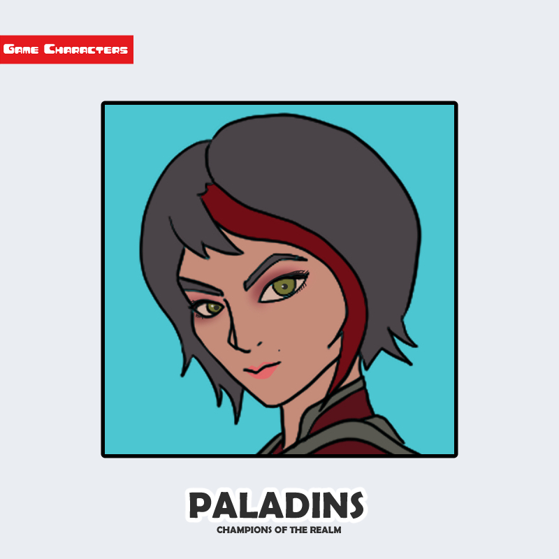 『Paladins』に登場するVivianは、短く整えられた黒髪に赤いハイライトを入れた人型キャラクターである。目元は鋭い形状で、瞳は緑色を帯びており、強い視線を印象づける。衣装はダークグレーを基調とした軍装風の構造で、首元には襟付きのデザインが見られる。全体としては洗練された戦闘服構造を持ち、「指揮戦闘型」または「戦術兵士構造」に分類される。