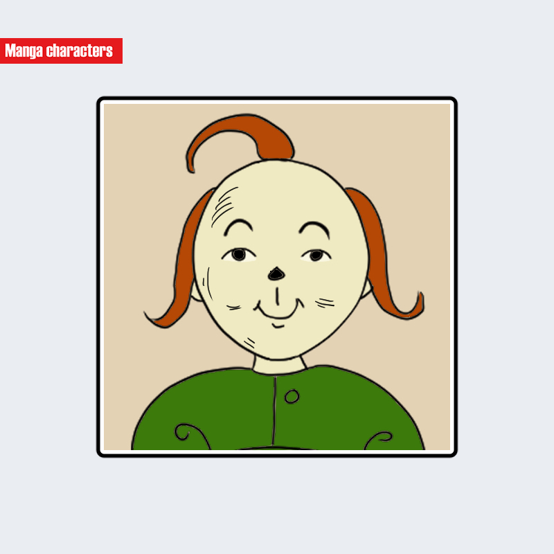幼児キャラや他作品のマスコット的デザインと混同されやすいが、左右に湾曲した髪束と、丸い輪郭に最小限の表情線を組み合わせた造形が固有の識別点となる。