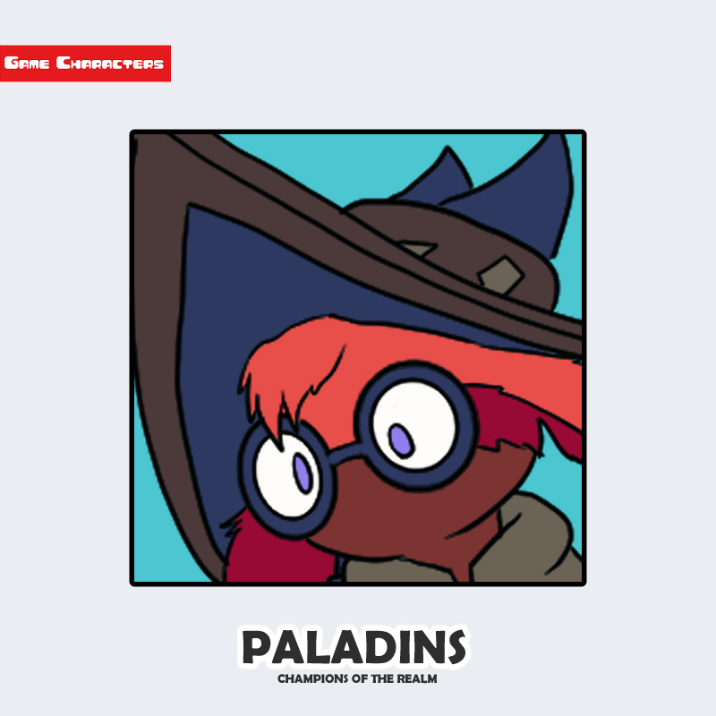 『Paladins』に登場するMojiは、小柄な体躯に大きな帽子をかぶり、円形の眼鏡をかけたキャラクターである。髪や耳の形状から、獣人または妖精的な種族構造が示唆される。帽子は広いつばを持ち、魔法使いを想起させるデザインで、衣装全体には茶系と赤系の柔らかな布地が使用されている。丸みを帯びたフォルムと装飾の少なさが特徴で、構造的には「魔法使い型」または「妖精魔導構造」に分類される。