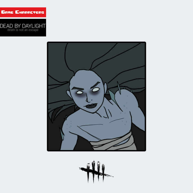 『Dead by Daylight』に登場するスピリットは、青白い肌を持つ女性型キラーである。髪は黒く長く、浮遊するように広がっており、身体の一部が裂けたような構造をしている。衣装は布帯状の包帯で上半身を部分的に覆うのみで、肉体と霊的要素が融合した外観を形成している。目は光を帯びた白色で、全体的に非物質的な質感を強調する。「霊体分裂型構造」に分類され、他の実体キラーとは異なり、物理的境界の曖昧さが造形の中核となっている。