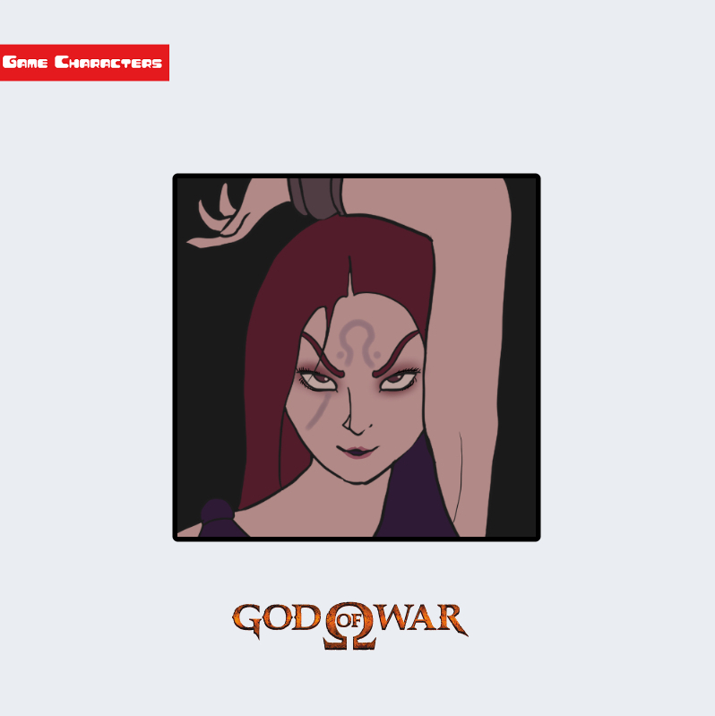 『ゴッド・オブ・ウォー』に登場するアフロディーテは、深紅色の髪を長く流した女性型キャラクターである。髪は中央で分けられ、波打つように肩へ落ちる構造を持つ。額から頬にかけて文様状の装飾が描かれ、神格的象徴として機能している。衣装は紫系の布地を基調とした軽装構造で、上半身の露出が多い。全体の造形は「神聖装飾型構造」に分類され、アテナの儀礼神格型よりも装飾的自由度が高い。