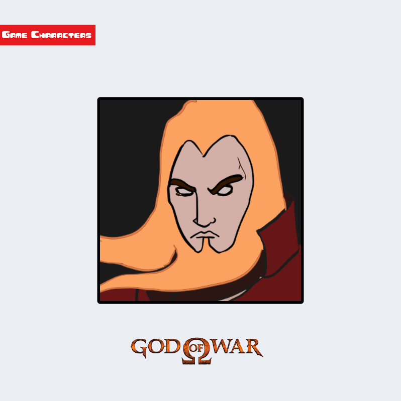 『ゴッド・オブ・ウォー』に登場するアレスは、炎を思わせる赤橙色の長髪を持つ男性型キャラクターである。髪は頭頂部から下方へ流れるように広がり、光を反射する滑らかな質感で描かれている。顔立ちは鋭く、眉間と頬の陰影が強調され、視覚的に攻撃的な印象を形成している。衣装は赤系の重厚な布地で構成され、肩部には金属的要素が部分的に組み込まれている。全体として「重装戦士神格構造」に分類され、ゼウスやハデスと並ぶ象徴的造形のひとつといえる。