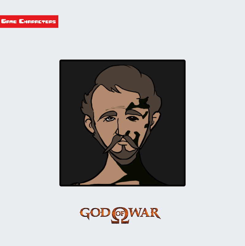 『ゴッド・オブ・ウォー』に登場するオルコスは、人間的外見を基調としながらも、顔面に黒色の紋様が走る独特な構造を持つキャラクターである。短く整えられた髪と口髭を備え、上半身は露出気味の軽装構成となっている。肌のトーンは淡く、紋様が視覚的なコントラストを生み出しており、身体そのものが装飾化された印象を与える。全体として「人型紋様構造」に分類され、他の神格系キャラに比べて肉体的・人間的要素が強調されている。
