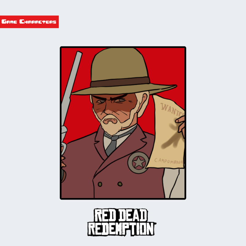 『レッド・デッド・リデンプション』に登場するリー・ジョンソンは、法執行者階層を象徴する統制型の衣装構造を持つ人物である。広いつばのハットと灰白の髭が特徴で、年齢層を示す造形が明確。濃い赤紫のジャケットには星型バッジが付き、法の象徴としての視覚的階層を形成している。胸元にネクタイを締め、書状を掲げる姿勢からも指揮権を担う立場を示す構造的演出が見られる。全体として「法執行官型制服融合構造」に分類される。