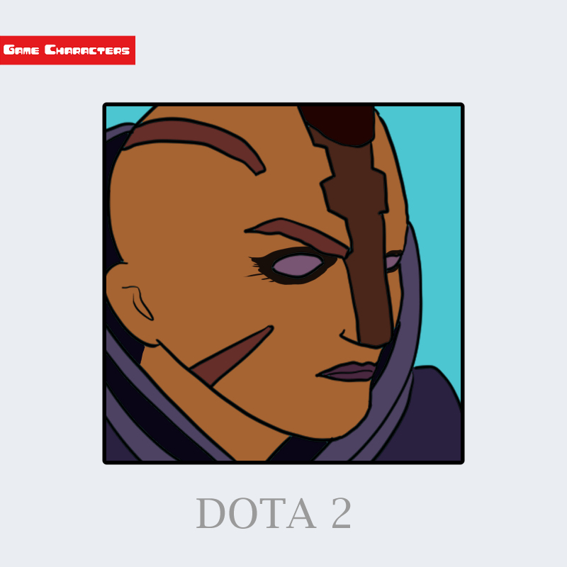 『Dota 2』に登場するアンチメイジは、頭部を覆う装飾的な防具を装着した人型のキャラクターである。額から後頭部にかけて走る金属状の縦ラインが特徴で、顔の両側には対称的な刻印のような溝が見られる。耳は大きく尖っており、エルフ的要素を持つ。肌は褐色系で、首元には紫色の布地を重ねた装束が確認できる。全体として「戦闘装束融合型」に分類され、同作のインヴォーカーの儀礼的造形と対照的に、実戦的意匠を重視した構造である。