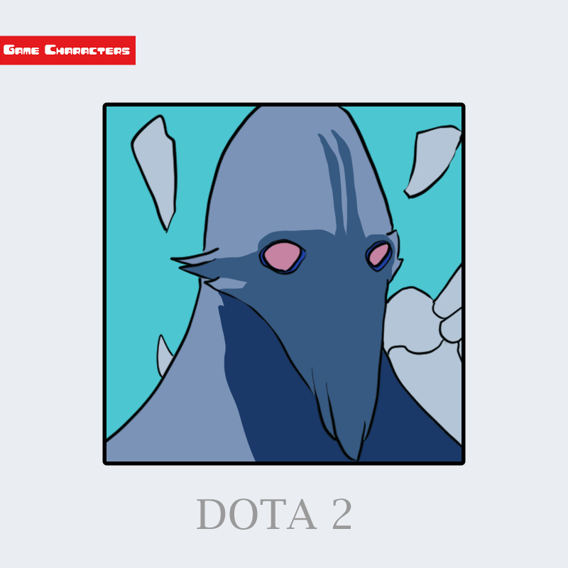 『Dota 2』に登場するエンシェントアパリションは、全体が青系の色調で構成された非人型の存在である。頭部は尖塔状に伸び、顔面には口のような構造がなく、赤い発光眼のみが配置されている。肩から腕にかけての輪郭は鋭角的で、氷片のような破片が周囲に浮遊している点が特徴的である。明確な衣装要素はなく、身体全体が結晶状の構造を持つ「冷気霊体構造」に分類される。