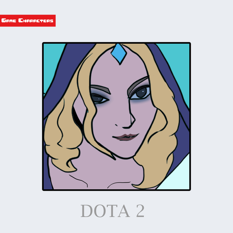 『Dota 2』に登場するクリスタルメイデンは、氷を象徴する意匠を持つ人型キャラクターである。金色の髪を波状に垂らし、青を基調としたフード付きローブをまとっている。額には青い宝石が装飾として埋め込まれており、目元のラインと衣装の配色が冷気を連想させる統一構成となっている。肩口には毛皮装飾が確認でき、「氷魔導士型構造」に分類される。全体的に寒冷地の神秘性と優雅さを融合させた造形が特徴的である。
