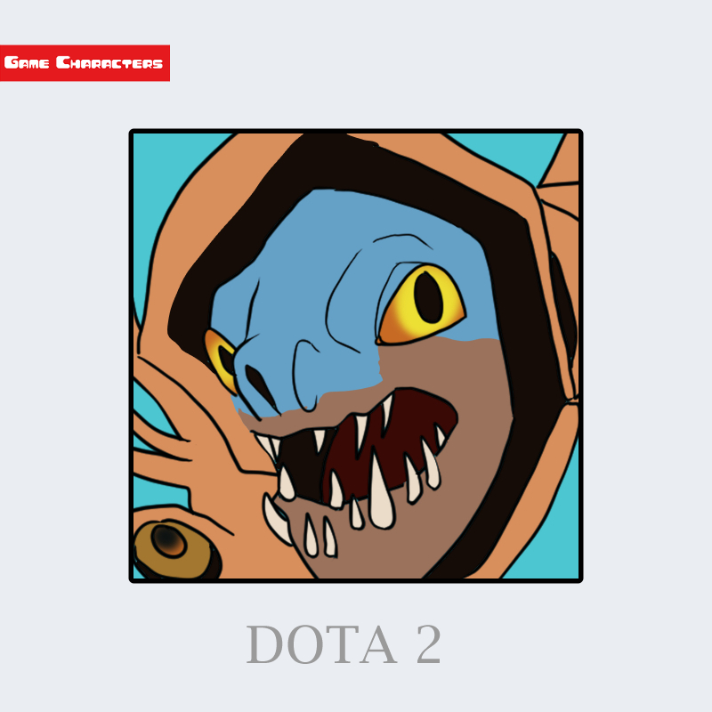 『Dota 2』に登場するスラークは、水棲生物を基にした擬人化キャラクターである。肌は青色で滑らかに光沢を持ち、両目は黄色く大きく、捕食者的な形状をしている。口部には鋭い歯列が並び、頭部から背にかけてヒレ状の構造が伸びている。全身は生体的要素と衣装的パーツ(フード状装飾)とが融合しており、「水棲擬人型構造」に分類される。同作の他キャラクターと比較しても、動物性と人間的構造の境界が最も曖昧な造形である。