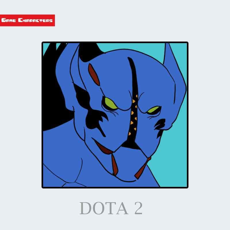 『Dota 2』に登場するナイトストーカーは、暗闇を象徴する異形の存在として造形されたキャラクターである。全身は濃い青色の皮膚に覆われ、頭部は角状の突起を持つ硬質な形状をしている。顔の中央には縦に並んだ骨質の稜線があり、両目は黄緑色に発光している。口部は裂けたように広がり、鋭い牙が露出している。「夜行異形構造」に分類され、同作に登場する人型キャラクターに比べて動物的要素と悪魔的造形が強く統合されている。